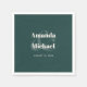 Project a sense of modern simplicity with this stylish simple wedding paper napkin design in the popular color choice - emerald green with light ecru text. The bride and groom's names are featured in bold typeface with a large stylish ampersand joining their names. This contemporary text is paired with simple lettering showing the wedding date. The result is a tasteful minimalist look with modern flair and a focus on the bride and groom and their chosen color scheme. Personalize the text with the bride and groom's initials and wedding date.