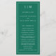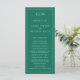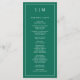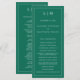 Modern Wedding Program featuring a simple yet elegant design with a traditional layout. Your two letter monogram is at the top along with your details surrounded by a thin border. All design elements are white over a jewel tone emerald green background and may be changed in the design editing tool. A minimalist design with a classic feel that is great for a formal wedding.