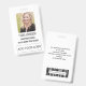 Personalize these vertical employee ID badges with an employee photo and name, along with multiple custom text fields along with the adding your logo. The title or role appears along the bottom in bold black lettering for easy identification. Customize with your barcode and return information or other details in the back.