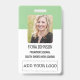 Personalize these vertical employee ID badges with an employee photo and name, along with multiple custom text fields along with the adding your logo. The title or role appears along the bottom in bold black lettering for easy identification. Customize with your barcode and return information or other details in the back.