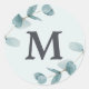 Simple Eucalyptus Branches Rustic Wedding monogram Classic Round Sticker