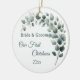 Simple Eucalyptus Wedding First Christmas Ceramic Ornament