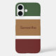Modern, simple and stylish personalized cell phone case with a fall color scheme pattern. Large green, tan and maroon stripes with small white stripes. Your name printed in a maroon text.