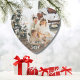 Simple, minimal, and modern family photo with name overlay in elegant stylish white script on a heart shaped ornament. Perfect for this festive season. Get your unique ornament for your christmas tree and as gifts for all your loved ones. Easy to customize photo and text. Happy Holidays!