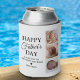 Minimalist father's day can cooler featuring a simple white background, the message "happy father's day", a saying that reads "I love you to the moon and back", a cute heart, and your childrens names. Plus 6 family photos for you to customize with your own to make this an extra special dad gift.