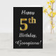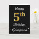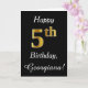 This simple birthday card design features the message "Happy 5th Birthday", with the "5th" having a faux gold-like appearance. It also features a custom name, and a black background. It could be given to somebody who is celebrating their fifth birthday.