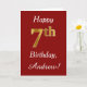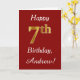 This simple birthday card design features the message "Happy 7th Birthday", with the "7th" having a faux gold-like appearance. It also features a custom name, and a dark red background. It could be given to somebody who is celebrating their seventh birthday.