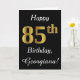 This simple birthday card design features the message "Happy 85th Birthday", with the "85th" having a faux gold-like appearance. It also features a personalized name, and a black background. It could be given to somebody who is celebrating their eighty fifth birthday.