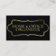 These eye catching black and FAUX gold foil business cards are simple yet elegant. The design consists of a FAUX gold foil text frame on a premium black card and are for any occupation from personal shopper, personal assistant, to a professional organizer or any other consultant job.