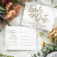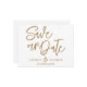 Save the date postcard: simple, elegant, and sophisticated. This minimalist design features hand-written calligraphy in luxurious faux gold, perfect for weddings, engagements, or special events. Easily customise with your unique details, personal information, event date, and location for a truly bespoke announcement.