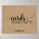This simple faux kraft calligraphy cards and gifts poster is perfect for a rustic or modern theme wedding. The minimalist design features an elegant brush script font and a lovely feminine heart. The line of text at the bottom of the sign can be personalized with the date, the names of the bride and groom, or a short message like "Thank you".