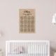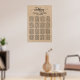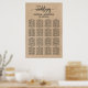 This simple faux kraft calligraphy seating chart poster is perfect for a rustic wedding. The minimalist design features an elegant brush script font and a lovely feminine heart on a faux kraft background. This wedding poster includes enough room for up to 16 tables (160 guests). In addition to the placement of each guest, personalize this sign with the names of the bride and groom and the wedding date.