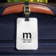 Simple Faux Silver Black Bold Monogram Luggage Tag