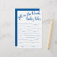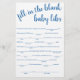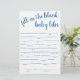 Simple fill-in-the-blank baby shower or gender reveal party word game featuring a fun, casual hand-lettered script. The classic design includes a modern handlettered quote typography overlay. For other colors or matching products, please visit the JustFharryn Zazzle store, or contact the designer, c/o Fharryn@yahoo.com All rights reserved. #bohochic #zazzlemade