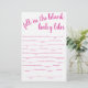 Simple fill-in-the-blank baby shower or gender reveal party word game featuring a fun, casual hand-lettered script. The classic design includes a modern handlettered quote typography overlay. For other colors or matching products, please visit the JustFharryn Zazzle store, or contact the designer, c/o Fharryn@yahoo.com All rights reserved. #bohochic #zazzlemade