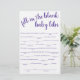 Simple fill-in-the-blank baby shower or gender reveal party word game featuring a fun, casual hand-lettered script. The classic design includes a modern handlettered quote typography overlay. For other colors or matching products, please visit the JustFharryn Zazzle store, or contact the designer, c/o Fharryn@yahoo.com All rights reserved. #bohochic #zazzlemade
