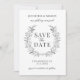 Embrace sophistication with our refined rustic Save the Date photo invitation. Adorned with a delicate wreath of black and white flower blooms, this elegant simple design includes a couple's photo on the back for a personal touch. Elevate your wedding anticipation with this unique invitation.
