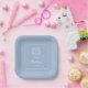Simple Floral Cross on Light Blue Baptism Square Paper Plates