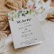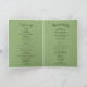 This simple floral green calligraphy folded wedding program is perfect for a tropical wedding. The design features lovely white, pink, and blush hand-painted roses embedded in green foliage, inspiring artistic beauty.