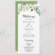 This simple floral green foliage wedding program is perfect for a tropical wedding. The design features lovely white, pink, and blush hand-painted roses embedded in green foliage, inspiring artistic beauty.