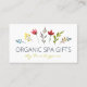 These simple white business cards have a display of watercolor flowers. Use them for an organic spa and skincare business.