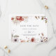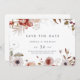 This simple floral horizontal save the date card is perfect for a rustic wedding. The whimsical boho design features rustic blush pink, burgundy and marsala flowers with a moody and romantic tone.