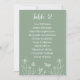 Unique simple seating chart card featuring romantic and elegant white flowers on sage green background