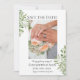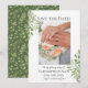 This editable Save the Date Card features the Simple Foliage design with the photo of the couple getting married. Image shown is for display purpose.