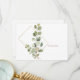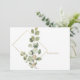 Funeral, bereavement thank you card. Family name and thanks on the back. Typography. White Background. Foliage. Simple. Eucalyptus. Gold text.