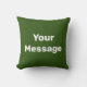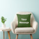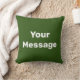 This dark green throw pillow has white display text. You can edit it to show your custom message.