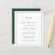 Simple budget save the date featuring a modern yet elegant design with your two letter monogram at the top and your wedding details surrounded by a thin border. All design elements are in forest green and may be changed in the design editing tool. A chic and stylish design that is great for a minimalist couple.