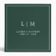 Simple wedding binder featuring a modern yet elegant design with your two letter monogram along with your names and wedding date surrounded by a thin border. All text is in white over a forest green background. The fonts and background colors may be changed to any colors you wish. A chic and stylish design that is great for a minimalist couple. Use this custom binder as a wedding photo album, wedding planner or scrapbook.