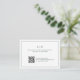 Simple Wedding Mini RSVP Card featuring a modern yet elegant design with your two letter monogram along with your custom QR Code surrounded by a thin border. All design elements are in forest green and may be changed to any colors you wish in the design editing tool. A chic and stylish Wedding Response Card that goes well with any style of wedding invitation suite.