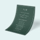 Simple forest green budget Wedding Program flyer featuring a modern yet elegant design with your two letter monogram at the top and your details surrounded by a thin border. The fonts and colors may be changed in the design editing tool. The front has your order of ceremony and the back has your wedding party and thank you message. A chic and stylish design that is great for a minimalist couple. These cheap wedding programs are printed on sheets of paper for a budget friendly option.