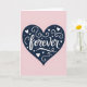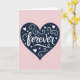 This greeting card centers on a large deep navy-blue heart set against a soft blush pink background. Across the heart, the word “forever” appears in white flowing cursive-style lettering, placed right through the middle so it’s the first thing you notice. Inside the heart, there are small white hearts, gentle swirl lines, and tiny dots scattered around the text like a quiet little sky of love. The dark blue and pink together feel calm and close, like something you’d give when you want to be steady and sincere. It’s a simple design, but it says a lot about sticking with someone through everyday life. This card feels meaningful because it focuses on one clear promise without needing a lot of extra words. Add it to a gift or give it on its own for a sweet moment 🥰❤️