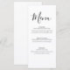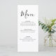 Present your reception dinner in timeless style with this minimalist elegant wedding menu featuring a graceful script title and refined serif typography. The clean black and white design offers a sophisticated layout that highlights each course while maintaining a modern, uncluttered aesthetic.