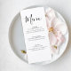 Perfect for place settings, reception tables, or dinner displays, this menu design adds a polished touch to your wedding table styling while coordinating seamlessly with minimalist wedding stationery suites.