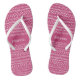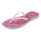 Simple Fuchsia Pink with a white boho stripes pattern flip flops. Personalize by adding your name.