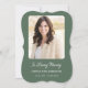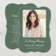 This simple modern memorial remembrance card with elegant white script on a calming sage green background can be given as a keepsake at a Celebration of Life or funeral service or sent as a special tribute to those who were unable to attend. Personalize this card with a favorite photo and your choice of prayer or poem on back of the card. Easy to customize.