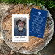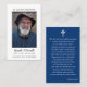 Simple funeral prayer card. Add your favorite photo, script, and classic typography is used. On the back of the card is the prayer that can be customized overlaying a blue background.