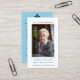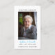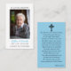 Simple funeral prayer card. Add your favorite photo, script, and classic typography is used. On the back of the card is the prayer that can be customized overlaying a blue background.