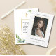 Photo funeral sympathy memorial prayer cards, Design features elegant watercolor eucalyptus greenery leaves that frame the prayer. Easy to customize photo and prayer on back of card.