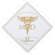 Celebrate your achievement in style with this modern doctor graduation cap topper, featuring a sleek design with a gold caduceus, and elegant gold script calligraphy initials monogram. The clean design adds a touch of sophistication. Gold and black type.