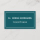 This classy, simple, and minimal business card design features a double-line white border. It could be used by a professional such as a general surgeon, paediatrician, family physician or psychiatrist. The name, profession and contact details can be personalized.