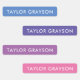 Simple girls full name clothing labels of 4 colors blue, purple, light purple and pink.