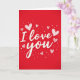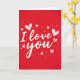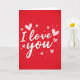 This card features a deep red background with the words “I love you” large in the center in flowing white letters. Around the message, white hearts float like confetti, mixing simple outlines with hearts that have tiny stitch-like lines inside. A few hearts are dotted with soft pink speckles, giving them a gentle sparkle effect without being too loud. Small white dots are scattered around the hearts, adding a light, happy feel to the whole front. The message is easy to read and feels direct, like something you’d say out loud when you really mean it. Giving this card can feel meaningful because it keeps the focus on love while still looking thoughtful and sweet 🥰. It’s a simple way to show you care, and it makes sharing Valentine’s Day feelings feel natural ❤️.