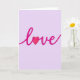 This greeting card features the word “love” stretched across the front in smooth, flowing cursive letters. The letters are a bright fuchsia pink with a shiny look that makes them feel soft and sweet. Instead of an “o,” there’s a deep red heart right in the middle, with a small highlight that gives it a gentle sense of depth. The background is a soft lavender, so the pink and red stand out without feeling too loud. The word sits centered on the card, and the lettering looks like a neat, connected pen style rather than printed type. It’s simple, but it says a lot, making it a thoughtful choice for a partner, a close friend, or anyone you care about 🥰❤️.