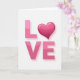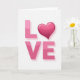 This greeting card features the word “LOVE” centered on a white background, written in large uppercase letters. The letters are a bright pink with smooth shading that makes them look rounded and slightly raised. Instead of the usual “O,” there’s a puffy heart in the same pink, with shiny highlights that make it look glossy. A soft, light-pink shadow sits just beneath each letter and the heart, so the whole word seems to hover a little. The text looks like a simple, modern print style, and it’s placed right in the middle so your message feels clear and direct. It’s meaningful to give because it says what you feel without needing a lot of extra words, whether it’s for a partner or a close friend 🥰. Share it to pass along a little love this Valentine’s Day ❤️.