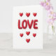 This greeting card centers on the word “LOVE” in big, shiny, deep red letters that look a bit like glossy candy or balloon shapes. The letters sit across the middle of a plain white background, so your eyes go straight to the message. Above the word are three small red hearts, and below it are four more, with one heart placed lowest to finish the line. Each heart has the same glossy highlight as the letters, which makes everything feel sweet and affectionate 🥰. Soft shadows under the letters and hearts add depth, so the design looks slightly raised instead of flat. The text “LOVE” appears in chunky, rounded letter shapes, colored crimson, and it’s placed right in the center of the card. It’s a simple way to say what you feel without needing a long note, making it easy to give to a partner or a close friend ❤️. Hope it helps you share your Valentine’s Day sentiments.