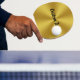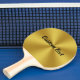 This gold ping pong paddle has text in a black script. The text can be edited or deleted. The gold look is not made of foil.